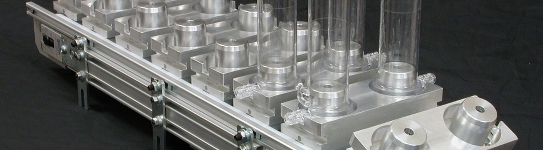Fixtures and nests secure parts by geometry, capturing edges, flanges, or cavities. Fixtures mount to the belt and travel with parts through all stations. Quick-change fixture systems enable product changeover without replacing the belt.